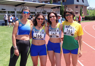 Excelente actuación de nuestras chicas de oro en el Campeonato de Madrid celebrado en Majadahonda el pasado día 5. Han conseguido 8 medallas, 4 de oro, 3 de plata y 1 bronce, el que pueda que lo mejore. Saltaron al Majadahonda Arena con gran valentía y decisión, obteniendo estos magníficos resultados: Azucena López se ha proclamado Campeona de Madrid de lanzamiento de Disco (1kg-50 a 54), con 18.07 m; Campeona de Madrid de Javalina (500g), con 16.26 m. Clarisa Ernst se ha proclamado Campeona de Madrid de Triple Salto (40-44), con 7.96. Subcampeona de Madrid de 80 mv, con 16,68. Purificación Carazo se ha proclamado Campeona de Madrid de Disco (1 kg-45.49), con 15.74 y Medalla de Bronce en 100 m, con 19.65. Mónica Carrasco se ha proclamado Subcampeona de Madrid de 1500 m (40-44), con 6.17.40. Además fue cuarta clasificada en 100 m, con 17.47. Las cuatro atletas formaron equipo en los 4X100 y se proclamaron Subcampeonas de Madrid de esta disciplina, con 1.07.47. Felicidades a todas por los éxitos obtenidos y por vuestra constancia, hacéis de éste un club grande. Enhorabuena. Fotos en galería Picassa