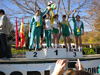 El pasado sábado 26/11/2011, se celebró en nuestra localidad el II Cross Villa de El Escorial y el I Campeonato de Madrid de Cross por Relevos, con un nuevo record de participación, 924 atletas inscritos. En primer lugar, agradecer a el Ayuntamiento de El Escorial por acompañarnos en este evento y por el apoyo prestado. Muy especialmente a la Concejalía de Deportes, por su implicación en este deporte y por la magnífica labor que viene desempeñando. Agradecimiento a los colaboradores: Talleres Escorial-Renault, Fisoalmat, Viator, Bar Laz Pozas, ICL Instalaciones Telecomunicaciones e Instituto de Especialidades Podológicas. A la FAM, Clubs asistentes, voluntarios, empleados del ayuntamiento, Protección Civil y a todos los que habéis asistido y participado de una forma u otra. Felicitar muy especialmente a nuestro presidente, Fernando Román, por hacer posible lo imposible. Gracias a todos. En el plano deportivo, los chicos/as han respondido a las expectativas en ellos depositadas, y esta es la mejor manera de agradeceros vuestro esfuerzo: Hemos conseguido 4 Campeonatos de Madrid, 2 Subcampeonatos y 4 Terceras Plazas, además de muy buenas clasificaciones del resto de los chicos/as, que hicieron una excelente prueba. La categoría cadete masc., pintó el podio de verde y blanco: John Almazan y Rodrigo Mendoza, Medalla de Oro. Pablo Castander y Andre Ortiz, Medalla de Plata; Javier Medrano y Alberto Casado, Medalla de Bronce. Espectacular la lucha mantenida entre ellos. Las féminas Lucía Escudero y Lucía Rodríguez, Medalla de Bronce. Los juveniles masc., estuvieron a punto de emular la hazaña de los Cadetes. Alejandro Castander y Víctor Ramos, Medalla de Oro.; Edmundo Ahijón y Ángel Aguilera, Medalla de Bronce. Los promesa masc,. Rafael Tardío y Rodrigo Fernández, Medalla de Oro. En veterano masc., Fernando Román y Miguel A. Camarero, Medalla de Oro. En fem., Mónica Carrasco y Carolina de los Arcos, Medalla de Bronce. Y por último las Júnior fem. María Huerta y María González, Medalla de Plata. Ya en nuestro II Cross Villa de El Escorial, la categoría absoluta masc., se resolvió a favor de David Miguel Torres (Grupo Oasis). 2º- Satur Rodríguez Pacheco, (CA Guadarrama) y 3º- Ricardo Martín Pacheco (C. Atletismo a Gatas). En la categoría femenina, 1ª fue Ana Martín Berlanas (Valdeiglesias Martín Berlanas). 2ª- Inés Redondo Fernández (Agrupación Deportiva San Lorenzo) y 3ª- Mónica Carrasco Schmidt.( Ardillas de El Escorial). Además, los nuestros obtuvieron premio en categoría cadete fem., Camelia Popescu, Medalla de Bronce; Infantil fem., Laura Román, Medalla de Bronce y alevín fem., Alexandra Popescu, Medalla de Bronce. Los chicos de la escuela tuvieron una destacada actuación, consiguiendo primeros, segundos y terceros puestos. Felicidades a todos los participantes.