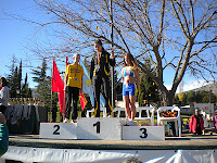El pasado sábado 26/11/2011, se celebró en nuestra localidad el II Cross Villa de El Escorial y el I Campeonato de Madrid de Cross por Relevos, con un nuevo record de participación, 924 atletas inscritos. En primer lugar, agradecer a el Ayuntamiento de El Escorial por acompañarnos en este evento y por el apoyo prestado. Muy especialmente a la Concejalía de Deportes, por su implicación en este deporte y por la magnífica labor que viene desempeñando. Agradecimiento a los colaboradores: Talleres Escorial-Renault, Fisoalmat, Viator, Bar Laz Pozas, ICL Instalaciones Telecomunicaciones e Instituto de Especialidades Podológicas. A la FAM, Clubs asistentes, voluntarios, empleados del ayuntamiento, Protección Civil y a todos los que habéis asistido y participado de una forma u otra. Felicitar muy especialmente a nuestro presidente, Fernando Román, por hacer posible lo imposible. Gracias a todos. En el plano deportivo, los chicos/as han respondido a las expectativas en ellos depositadas, y esta es la mejor manera de agradeceros vuestro esfuerzo: Hemos conseguido 4 Campeonatos de Madrid, 2 Subcampeonatos y 4 Terceras Plazas, además de muy buenas clasificaciones del resto de los chicos/as, que hicieron una excelente prueba. La categoría cadete masc., pintó el podio de verde y blanco: John Almazan y Rodrigo Mendoza, Medalla de Oro. Pablo Castander y Andre Ortiz, Medalla de Plata; Javier Medrano y Alberto Casado, Medalla de Bronce. Espectacular la lucha mantenida entre ellos. Las féminas Lucía Escudero y Lucía Rodríguez, Medalla de Bronce. Los juveniles masc., estuvieron a punto de emular la hazaña de los Cadetes. Alejandro Castander y Víctor Ramos, Medalla de Oro.; Edmundo Ahijón y Ángel Aguilera, Medalla de Bronce. Los promesa masc,. Rafael Tardío y Rodrigo Fernández, Medalla de Oro. En veterano masc., Fernando Román y Miguel A. Camarero, Medalla de Oro. En fem., Mónica Carrasco y Carolina de los Arcos, Medalla de Bronce. Y por último las Júnior fem. María Huerta y María González, Medalla de Plata. Ya en nuestro II Cross Villa de El Escorial, la categoría absoluta masc., se resolvió a favor de David Miguel Torres (Grupo Oasis). 2º- Satur Rodríguez Pacheco, (CA Guadarrama) y 3º- Ricardo Martín Pacheco (C. Atletismo a Gatas). En la categoría femenina, 1ª fue Ana Martín Berlanas (Valdeiglesias Martín Berlanas). 2ª- Inés Redondo Fernández (Agrupación Deportiva San Lorenzo) y 3ª- Mónica Carrasco Schmidt.( Ardillas de El Escorial). Además, los nuestros obtuvieron premio en categoría cadete fem., Camelia Popescu, Medalla de Bronce; Infantil fem., Laura Román, Medalla de Bronce y alevín fem., Alexandra Popescu, Medalla de Bronce. Los chicos de la escuela tuvieron una destacada actuación, consiguiendo primeros, segundos y terceros puestos. Felicidades a todos los participantes.